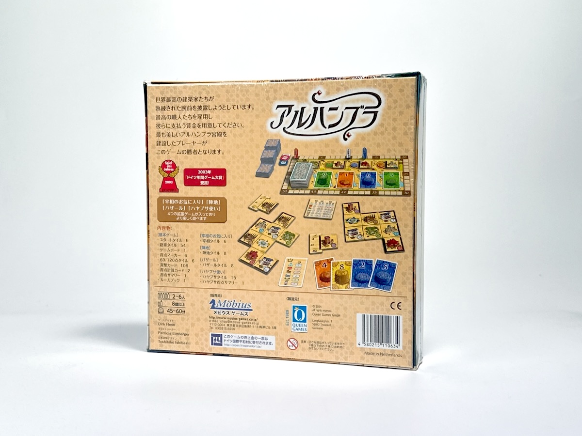 自分のアルハンブラ(宮殿)をいかに立派なものにするかを競争するタイル配置のボードゲームです。
