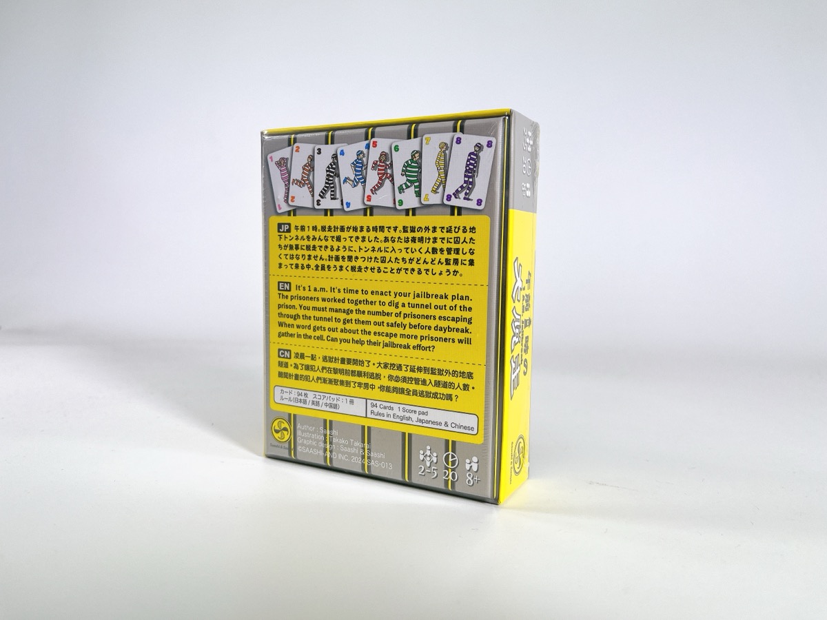 簡単なルールながら、相手の動きを読む頭脳戦と、一気にカードを出す爽快感がクセになる!気軽に楽しめるのに、勝負の行方は最後までわからない奥深さが魅力。さあ、脱走の鍵を握るのはあなた!今すぐチャレンジしてみませんか?