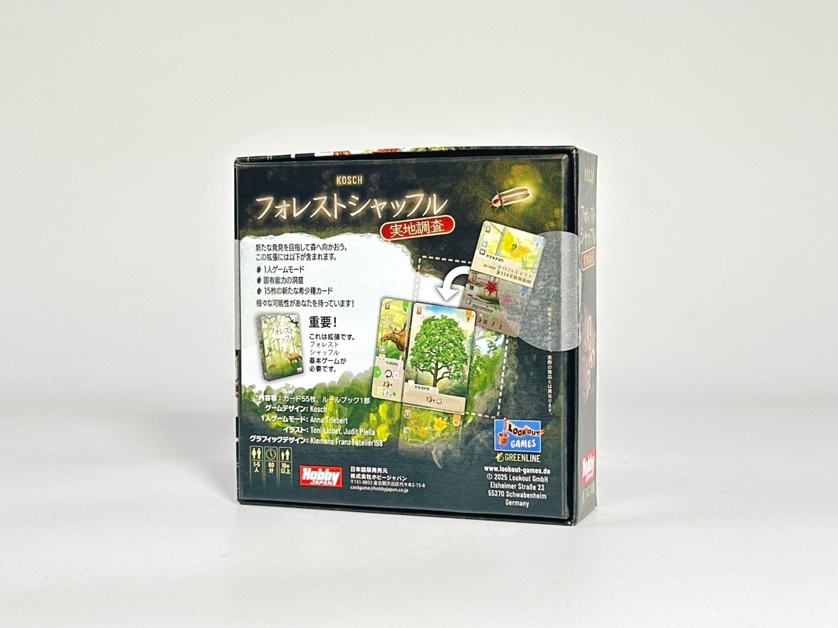 『フォレストシャッフル:実地調査』は、「アルプス」「林縁」に続く拡張第3弾です。3つの拡張をモジュール式で加えることができます。