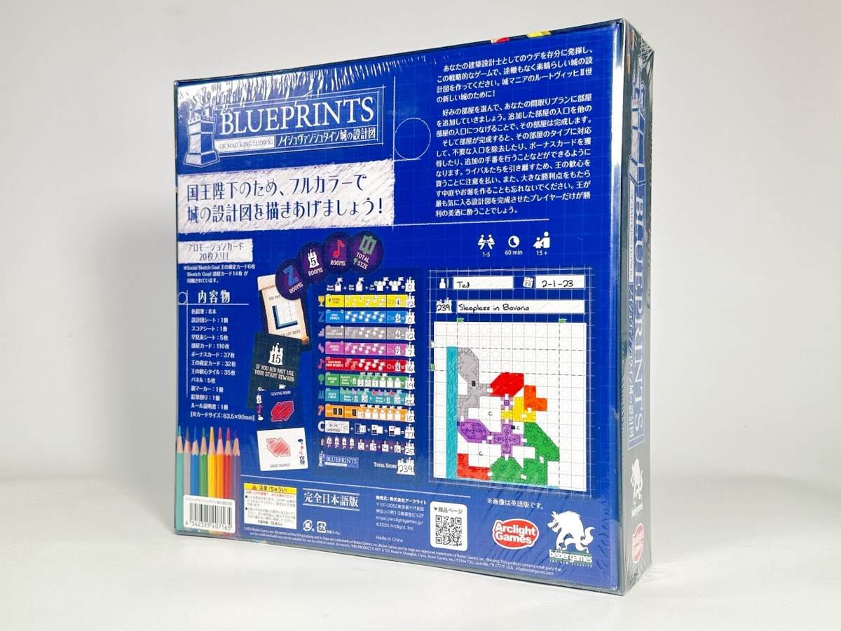 10ラウンドでゲーム終了となり、各色の部屋と共通目標である王の好みなどを得点化して勝敗を決めます。カードにはこれまでキックスターター版にのみ収録されていたプロモカード20枚も収録されており、より個性的な城づくりが楽しめます。