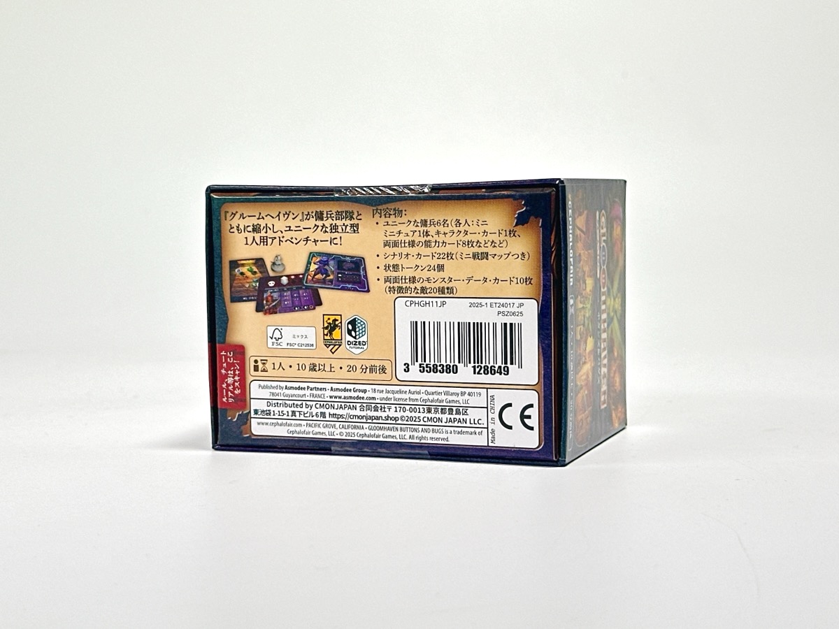 『ルームヘイヴン:ボタンズ&バグズ』は、チルドレスの大型キャンペーンゲーム「グルームヘイヴン」をコンパクトにした1人用ゲームです。オリジナルは昨年発売され、ゴールデンギーク賞ソロボードゲーム部門にノミネートされました。隠遁者ヘイルの魔法で縮小化され無法地帯に投げ出された英雄が元の姿に戻ることを目指します。
