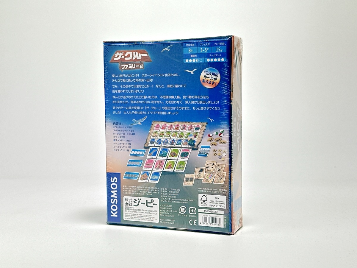 『ザ・クルー ファミリー』は、協力トリックテイキングゲーム「ザ・クルー」のファミリー版です。海賊に襲われ漂着した無人島。プレイヤー全員が力を合わせ、35のミッションを乗り越えて脱出を目指します。