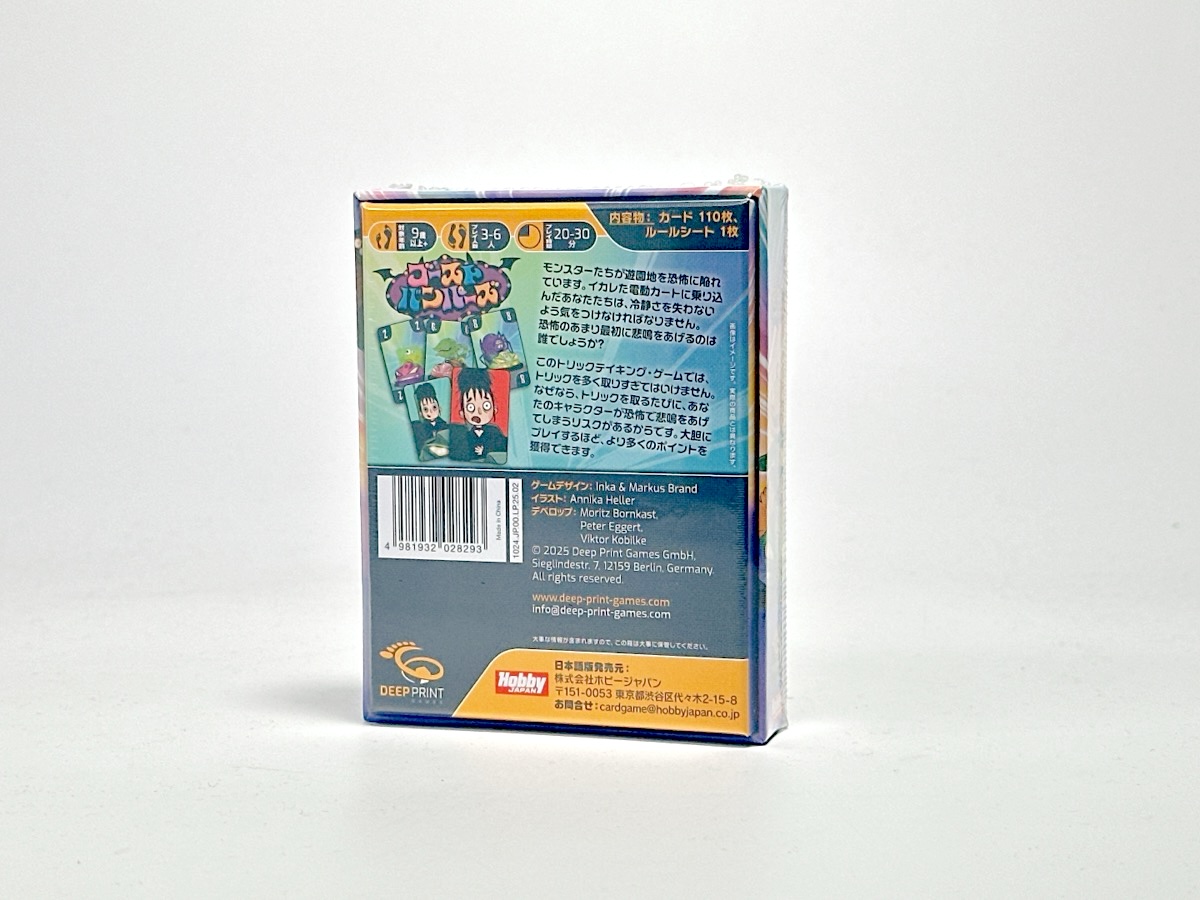 『ゴーストバンパーズ』は、モンスターたちが遊園地を荒らし回る中、クレイジーなカートで正気を保つというテーマのチキンレース系トリックテイキングゲームです。