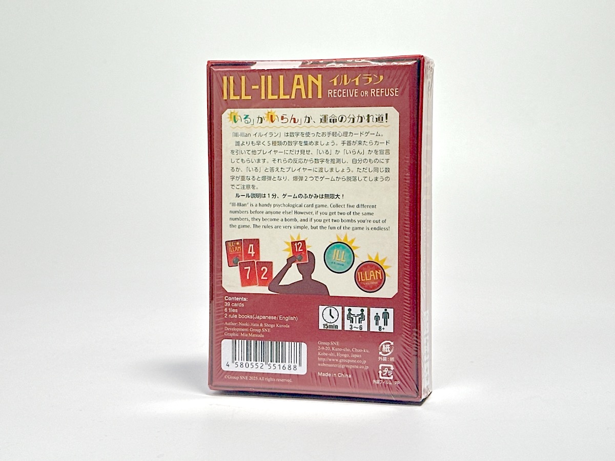 『イルイラン』は、引いたカードを自分が見られない中で、他プレイヤーの「いる」「いらん」から数字を推測するゲームです。