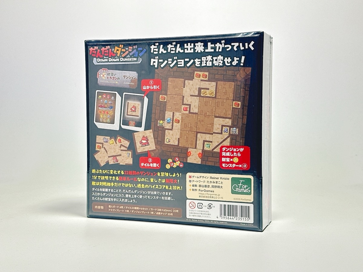タイルを入口からつなげて配置しなければならない「洞窟面」、ルールや得点方法を変更する10種類のドラゴンプレートがゲームごとに異なる展開をもたらします。それぞれのダンジョンでの「ハイスコア」を記録できます。好記録はハッシュタグ「だんだんダンジョン」でシェアしましょう。