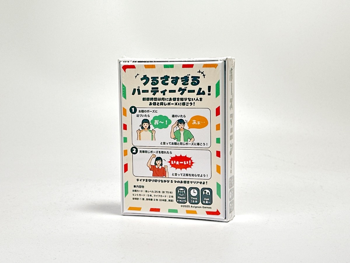 お題カード 75枚 / ヒントカード 5枚 / ライフカード 2枚 / 砂時計 1個 / 説明書 2枚