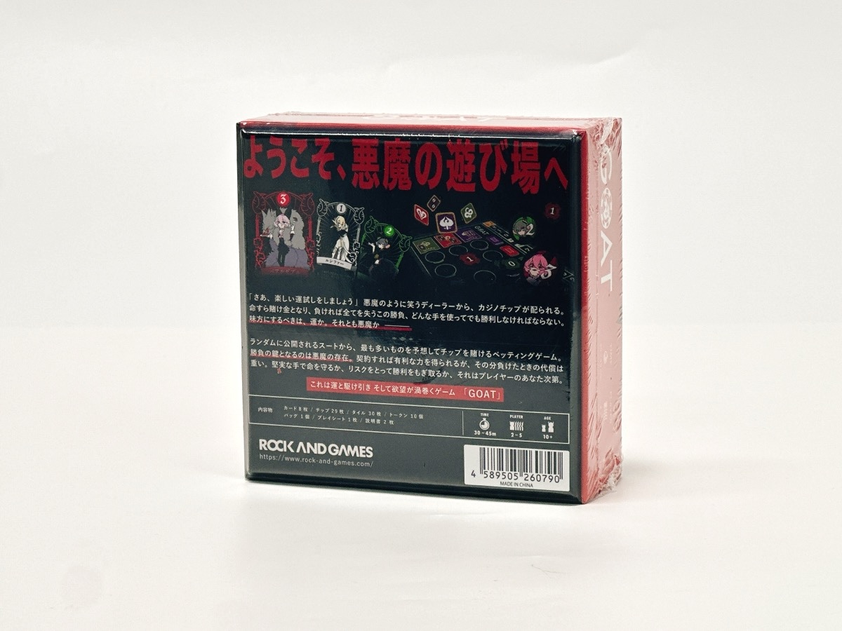 『ゴート(GOAT)』は、ランダムに公開されるスートから、最も多いものを予想してチップを賭けるベッティングゲーム。