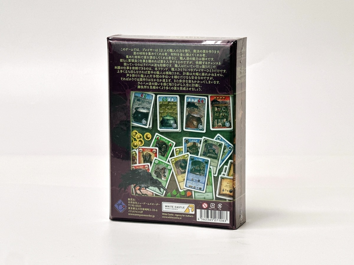 『魔法にかかったみたい』は、12の職人を使って魔法の材料から飲料を作り点数にするカードゲームです。