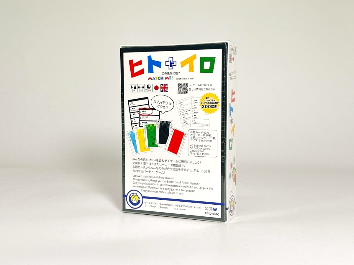 プレイヤーは手番プレイヤーが出したお題に連想されそうな色を裏向きにして出しておきます。これを繰り返し全てのプレイヤーの色が一致していればプレイヤー全員の勝利です。英語のルールとテキストが付属しているので、海外の方とも遊ぶことが可能です。